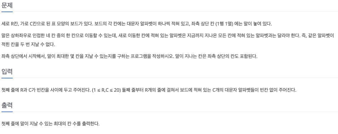 때문에 비트 연산자를 사용해 지나간 알파벳을 확인해야 시간초과 없이 통과되었다.