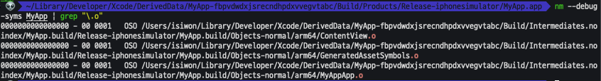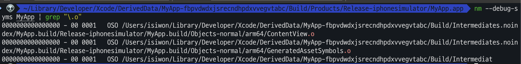 위 명령어를 통해 MyApp의 실행 파일 내부를 확인해보면,