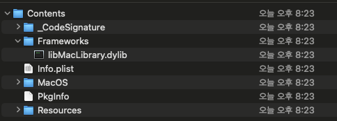 위와 같이 번들 내부에 동적 라이브러리 파일이 포함되어 있다.