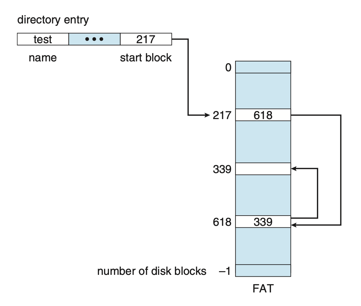 오늘날 FAT 파일 시스템이 연결 할당 방식을 차용해 구현되었다.(주소를 각 블록에 저장하지 않고 별도의 FAT라는 별도 테이블에 저장한다는 차이가 있음.)